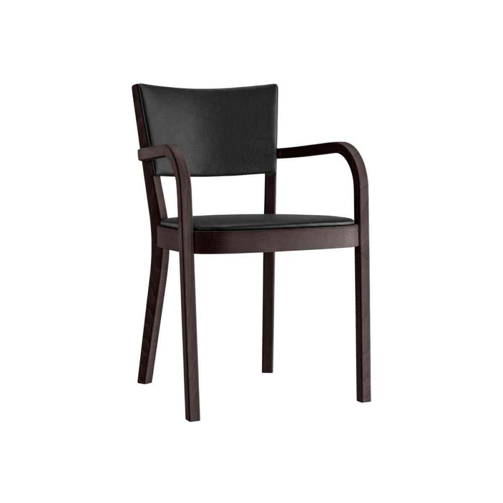 Siedzisko tapicerowane, oparcie sklejka profilowana, przód tapicerowane, nogi tylne, rama siedziska i podłokietnik lita gięta