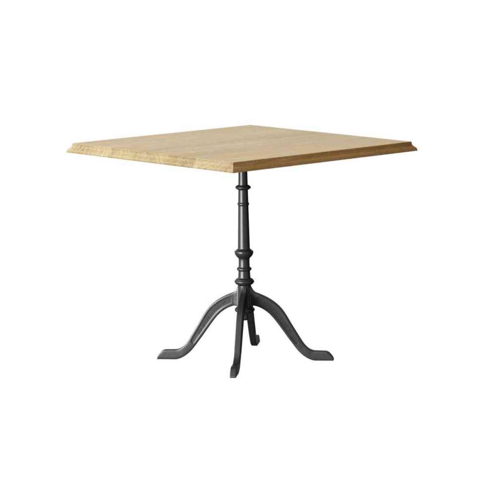 Tisch mit 4-teiligem Zentralfuss aus Gusseisen, Untergestell anthrazitfarben Lackiert und mit Originalschriftzug versehen, verstellbare Gleiter, Tischblatt massiv, 30mm stark, mit Gratleisten, Fussbreite: 58.5cm