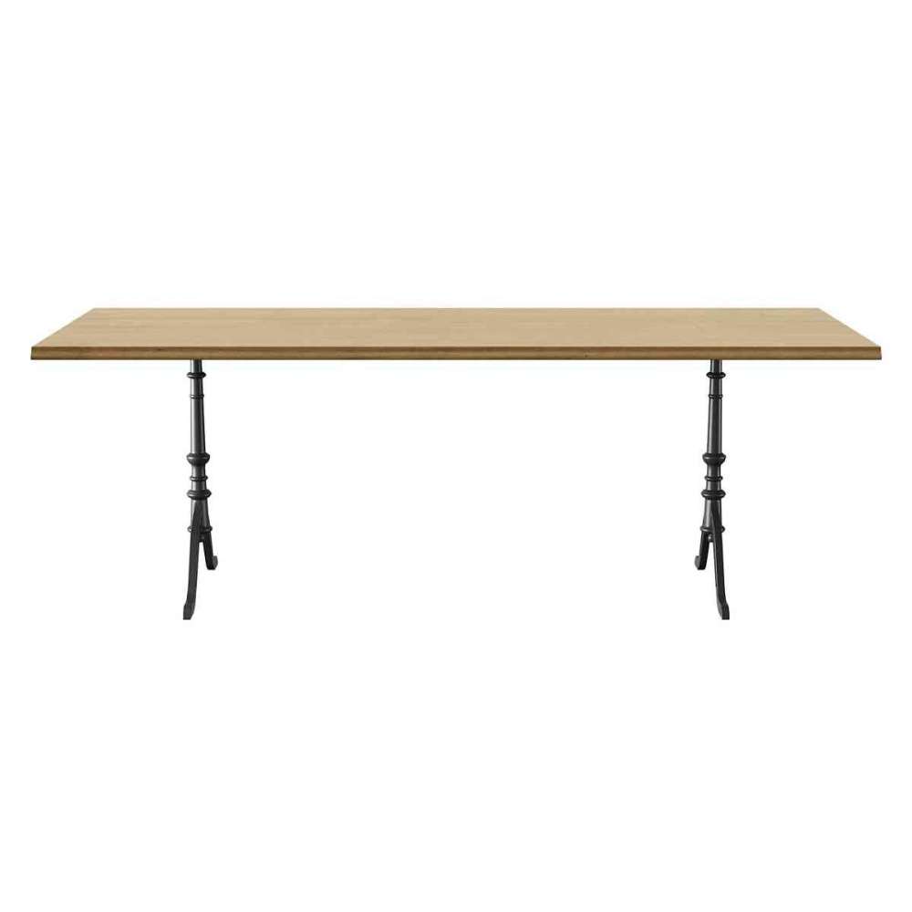 Stół z żeliwnymi nogami, wykończenie w kolorze antracytowym z oryginalnym napisem, regulowane suwaki, blat z litego drewna z listwami na jaskółczy ogon, grubość 30mm, szerokość nóg: 58,5cm