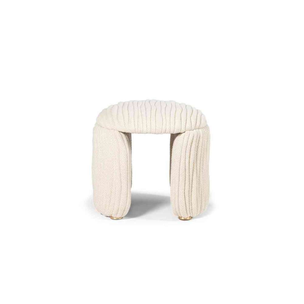 Jest w całości tapicerowany haftowanymi skórami lub tkaninami, a falista powierzchnia obejmująca całą konstrukcję charakteryzuje tę pufę.