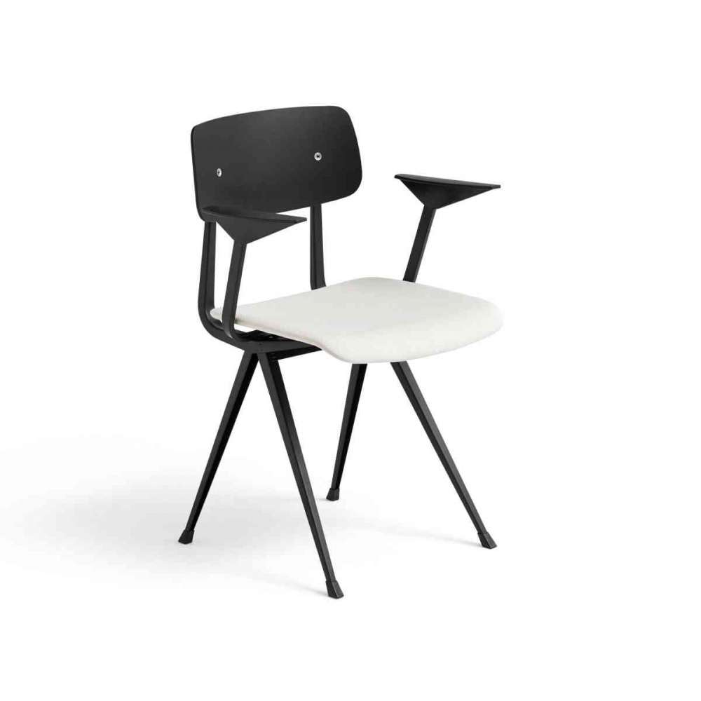 Krzesło Result ma podstawę z cienkiej blachy stalowej z dębowym siedziskiem i oparciem, zachowując maksymalną elastyczność, lekkość i wytrzymałość. Oryginalnie stworzona przez Friso Kramera i Wima Rietvelda podczas pracy w Ahrend w latach 50., kolekcja wycinanek ze stali została ponownie wprowadzona na rynek przez HAY wraz z Ahrend. Dostępne w różnych wykończeniach drewna i kolorach bazowych, z szeroką gamą opcji tekstyliów i skór dla siedziska. Siła i wszechstronność Result sprawia, że nadaje się do użytku w wielu kontekstach publicznych i prywatnych.