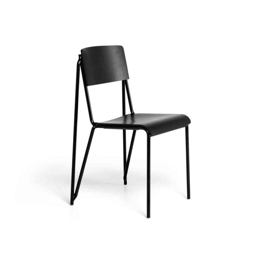 Rezultat ośmioletniej podróży, Petit Standard Daniela Rybakkena to studium precyzji i przemyślanych szczegółów. Mając na celu stworzenie krzesła, które można ustawiać jeden na drugim, a elementy, które można układać jeden na drugim, poprawiłyby jego wygląd, Petit Standard łączy elegancję i funkcjonalność w kultowym projekcie. Wykorzystując odlewane ciśnieniowo aluminiowe i stalowe rury, które łączą się w trójwymiarowy trójkąt, lekka rama ma wyraźnie geometryczną sylwetkę, którą równoważy ciepło i naturalna jakość siedziska i oparcia z forniru dębowego. Wysokie oparcie i zakrzywione siedzisko zapewniają wysoki komfort, a sztywne rurki optymalizują wytrzymałość krzesła i możliwość sztaplowania, dzięki czemu idealnie nadaje się do środowisk korporacyjnych, instytucji edukacyjnych i prywatnych. , wysokość siedziska 47 cm