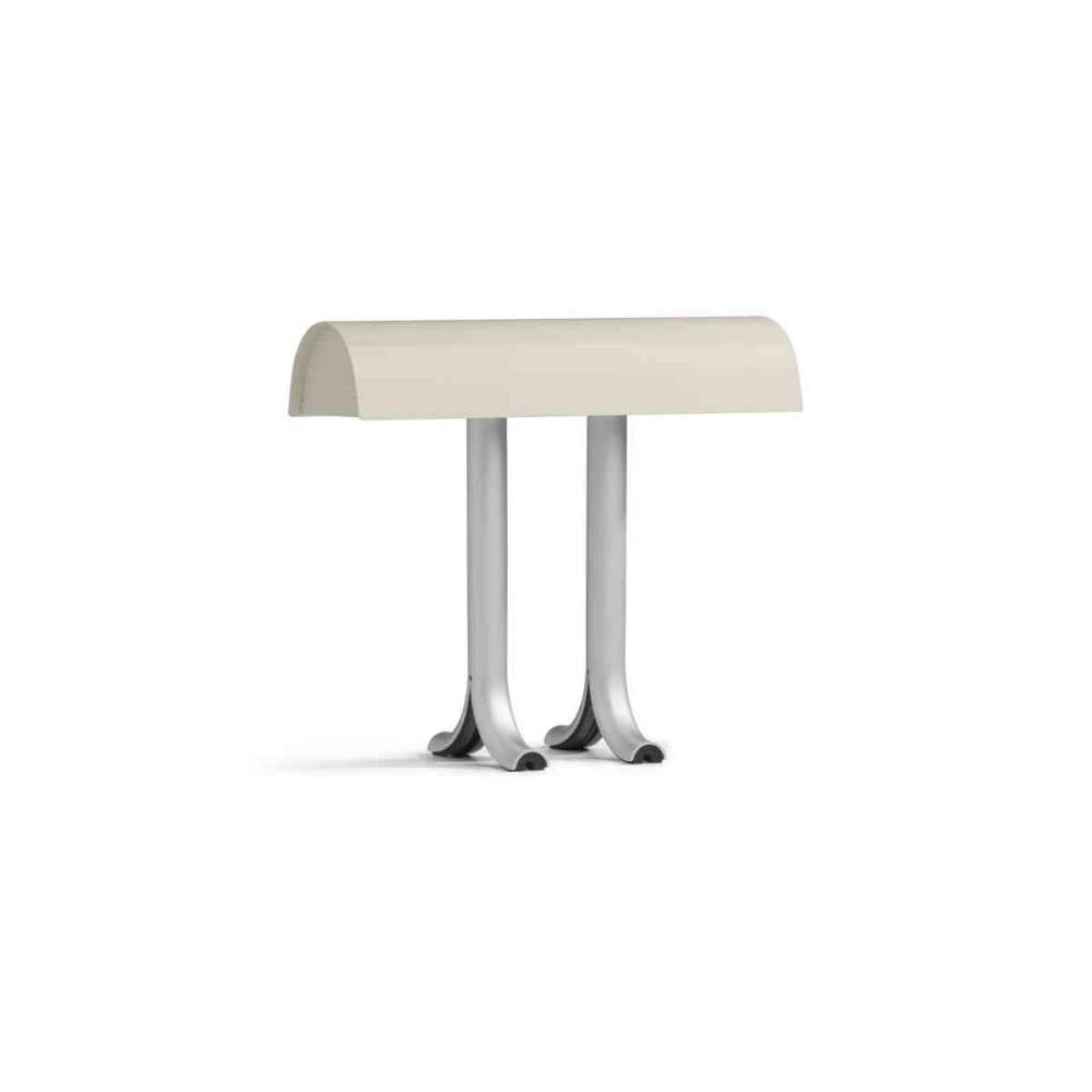 Lampa stołowa Anagram Sama Wellera łączy funkcjonalność z atrakcyjnością wizualną, tworząc lampę stołową o solidnej konstrukcji i silnej osobowości. Wyposażony w hojnie zakrzywiony, błyszczący klosz, który znajduje się na dwóch dzielonych nogach z anodowanego aluminium, kontrastujące elementy projektu aktualizują znaną typologię lamp o oryginalną i współczesną estetykę. Wytrzymały klosz z blachy stalowej i nogi rurowe są trwałe, tworząc solidną prezencję, która charakteryzuje się intuicyjną funkcjonalnością. Lampa jest wyposażona w przełącznik dwustabilny i wykorzystuje standardowe żarówki modernizacyjne, tworząc nastrojowe oświetlenie typu downlight, dzięki czemu nadaje się równie dobrze jako lampa na biurko lub jako dodatkowe źródło światła umieszczone na kredensie lub parapecie. Abażur dostępny w kilku wariantach kolorystycznych.