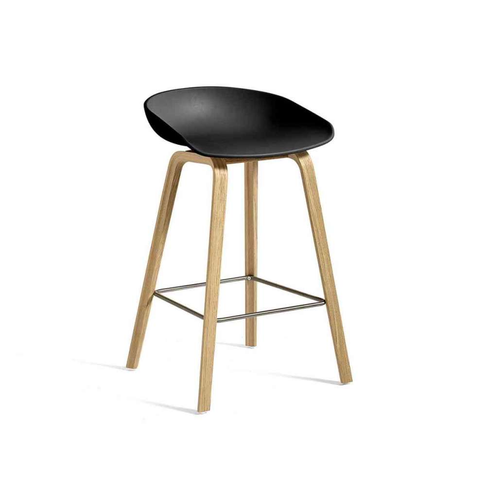 W celu odtworzenia kultowego stołka AAS firmy HAY w celu zmniejszenia wpływu na środowisko, w stołku About a Stool AAS 32 Eco zastosowano w 100% plastik z recyklingu poużytkowego, aby stworzyć charakterystyczne dla całej serii funkcjonalne i minimalistyczne siedzisko i oparcie. Dzięki zakrzywionej formie i długim, eleganckim drewnianym nogom ten ekologiczny stołek ma prosty, ale wyrazisty wygląd, dzięki czemu idealnie nadaje się jako stołek barowy lub kuchenny w wielu różnych miejscach publicznych i prywatnych. Siedzisko z recyklingu jest dostępne w różnych kolorach, z podstawą z drewna z certyfikatem FSC, a podnóżek jest wykonany ze stali. Taboret posiada oznakowanie ekologiczne UE jako znak zaangażowania w ochronę środowiska, podobnie jak inne modele z serii Eco. x W29,92”, wysokość siedziska 25,98”