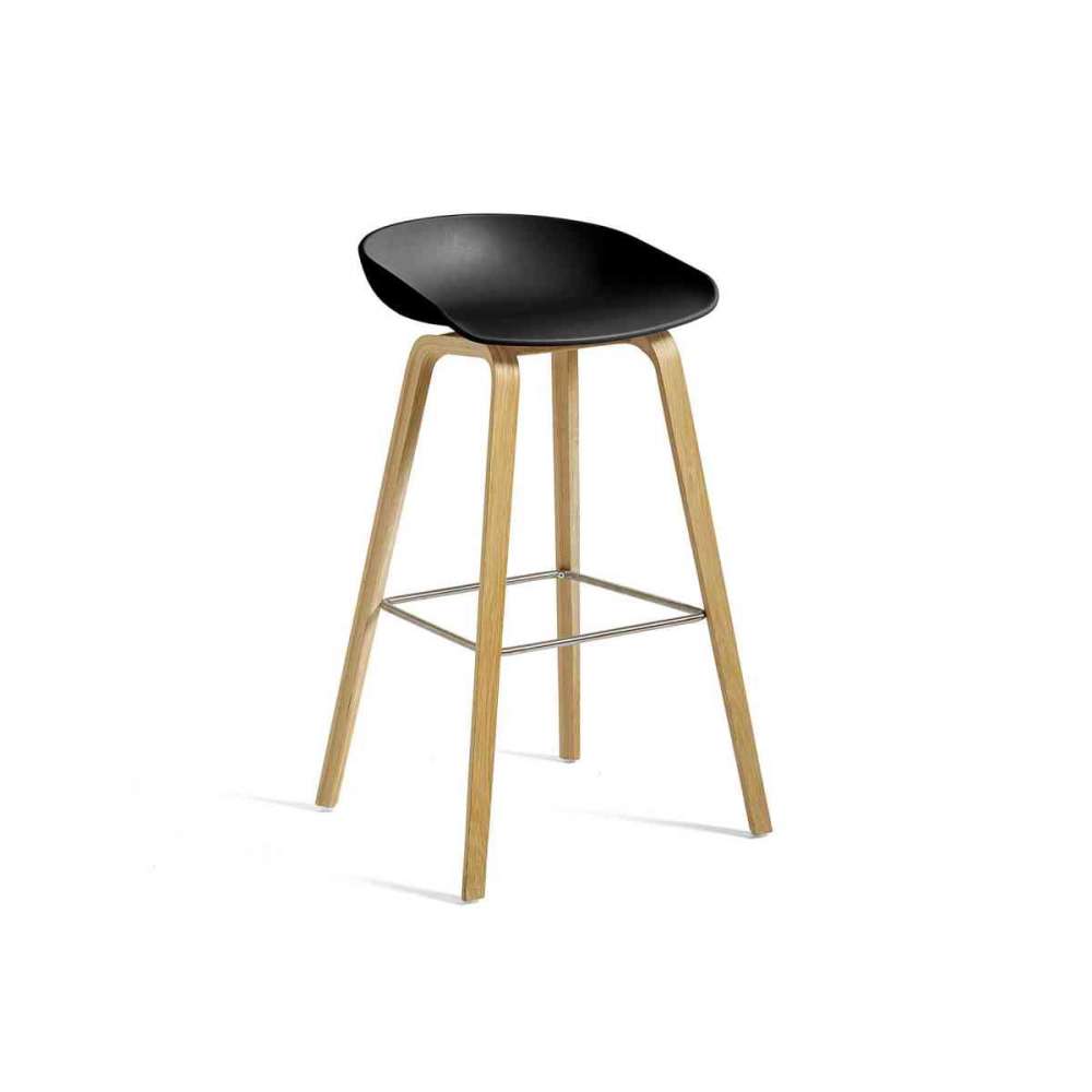 W celu odtworzenia kultowego stołka AAS firmy HAY w celu zmniejszenia wpływu na środowisko, w stołku About a Stool AAS 32 Eco zastosowano w 100% plastik z recyklingu poużytkowego, aby stworzyć charakterystyczne dla całej serii funkcjonalne i minimalistyczne siedzisko i oparcie. Dzięki zakrzywionej formie i długim, eleganckim drewnianym nogom ten ekologiczny stołek ma prosty, ale wyrazisty wygląd, dzięki czemu idealnie nadaje się jako stołek barowy lub kuchenny w wielu różnych miejscach publicznych i prywatnych. Siedzisko z recyklingu jest dostępne w różnych kolorach, z podstawą z drewna z certyfikatem FSC, a podnóżek jest wykonany ze stali. Taboret posiada oznakowanie ekologiczne UE jako znak zaangażowania w ochronę środowiska, podobnie jak inne modele z serii Eco. x W29,92”, wysokość siedziska 25,98”