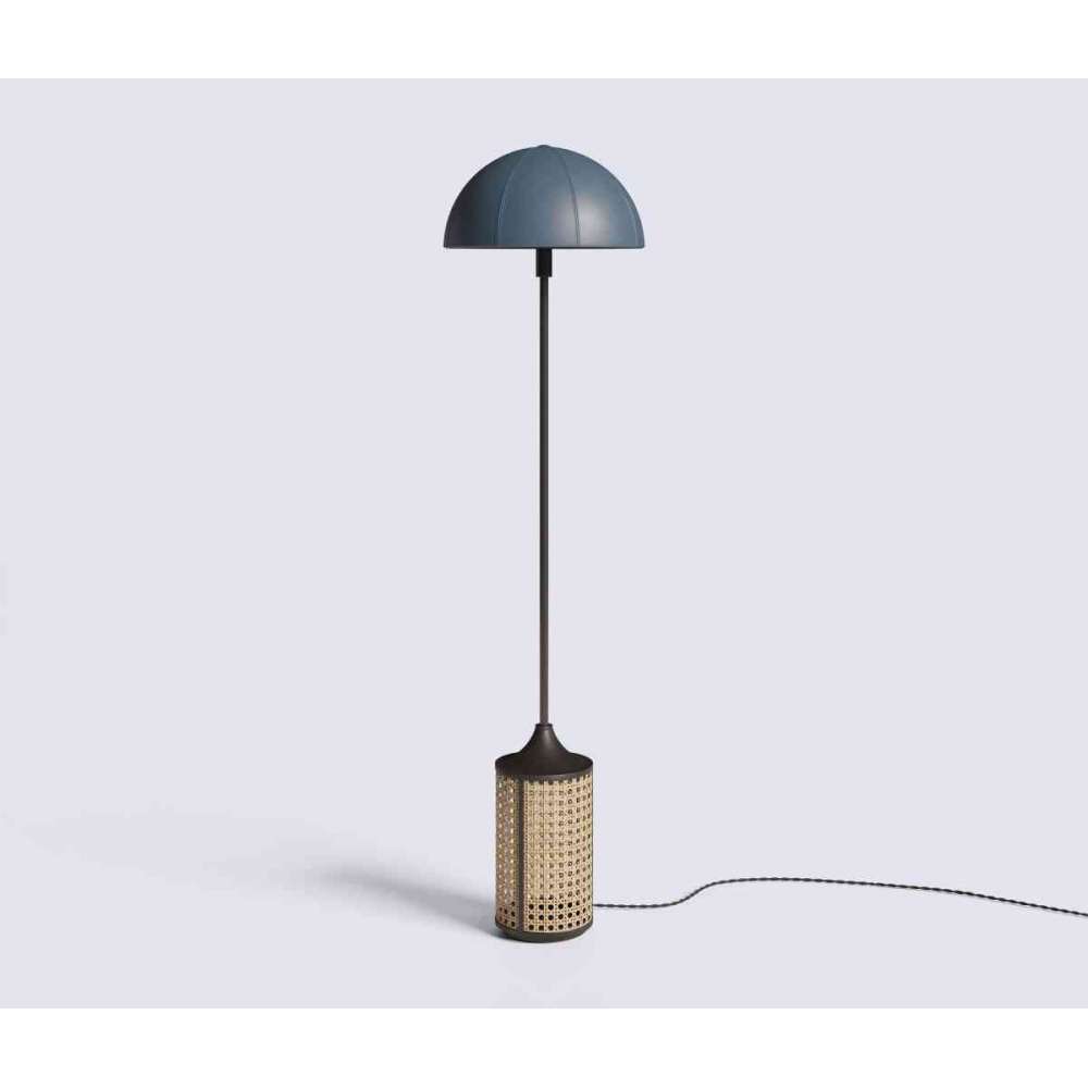 Wykonane ręcznie w Anglii, lampa ma solidną ramę jesionową z wstawkami z naturalnego splotu trzciny cukrowej. Malowane proszkowo stalowe ramię „Jet Black” rozciąga się do charakterystycznego klosza w kształcie kopuły, pokrytego rozciągniętą skórą z żarówką LED Tala w stylu filamentu. Tkany power flex z wbudowanym przełącznikiem dopełnia projekt