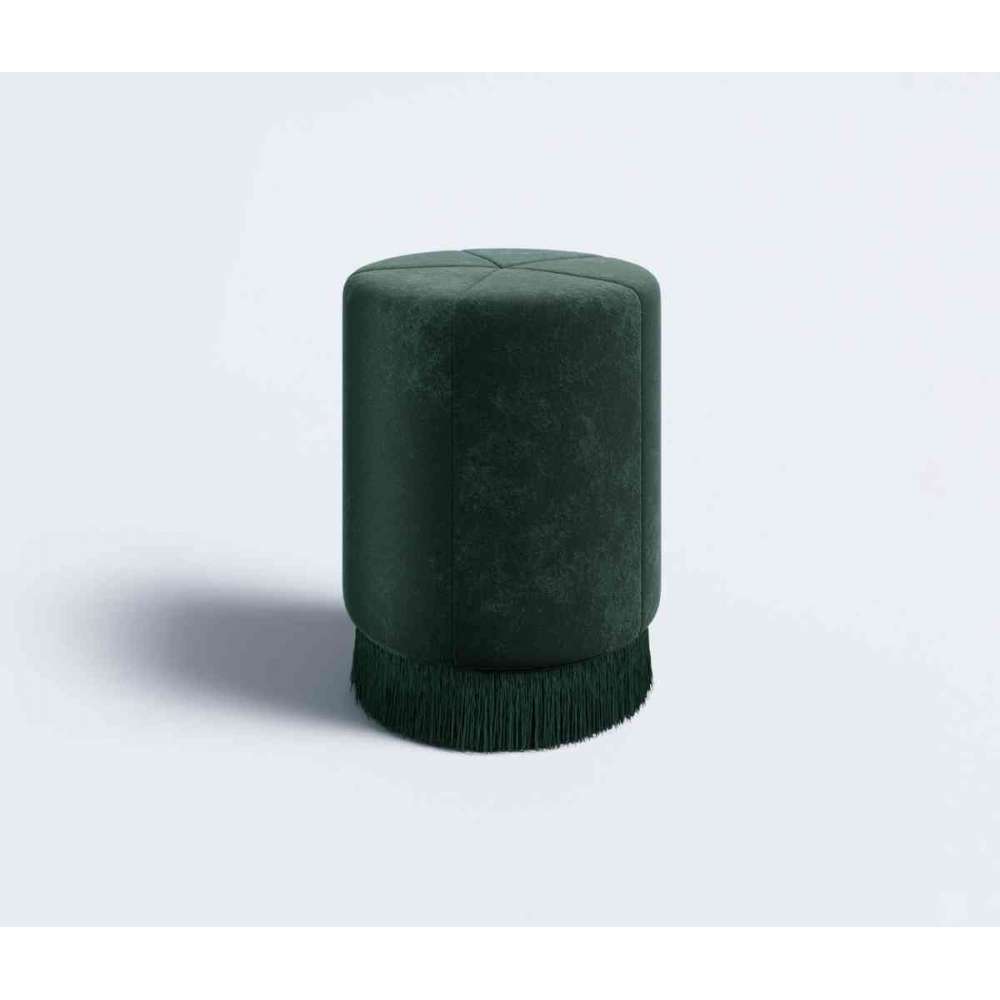 Ten seksowny niski taboret z jedwabnymi frędzlami doda odrobinę uroku każdemu wnętrzu, które ozdobi tapicerowane siedzisko z segmentowanym szwem i jedwabnymi frędzlami ukrywającymi jesionową podstawę