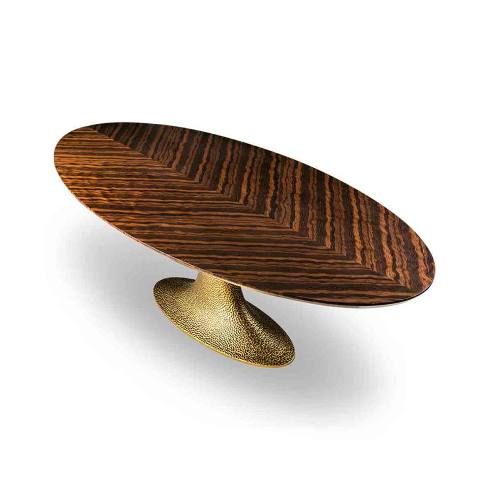 Zobacz większe Hamilton Conte Ines | Oval Hammered Radica Eucalyptus Imbuia Dining Table