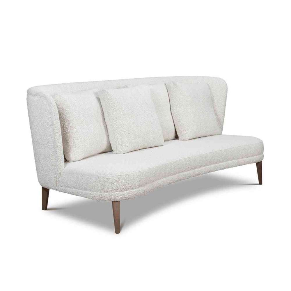 Ta trzyosobowa sofa zawiera cztery poduszki 60x60 i ma konstrukcję z litego drewna oraz nogi w wykończeniu Espresso. Jest dostępny w tkaninach Cat I-VI (9,2m / un.) i skórach i jest możliwy w materiale własnym klienta.