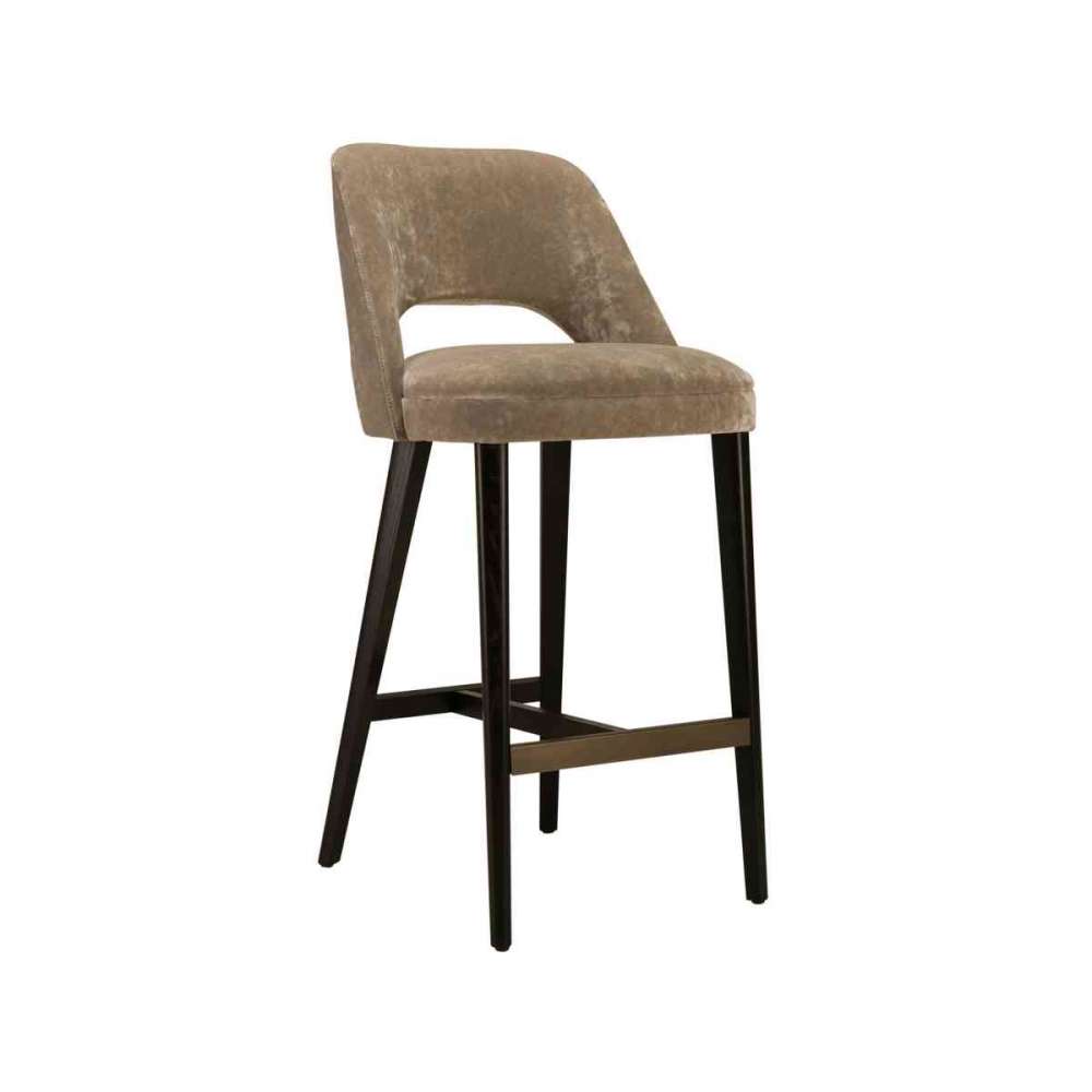 Ten stołek barowy ma konstrukcję z litego drewna i nogi w wykończeniu Espresso. Jest to możliwe w kat. I-VI (1,9m/szt.) tkaniny i skóry a także w materiale własnym klienta. Dostępne różne wysokości siedzisk.