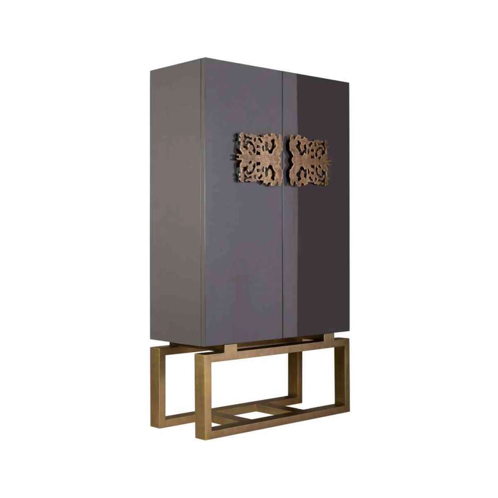 Ta szafka do przechowywania ma lakierowaną strukturę które można wykonać w dowolnym kolorze, jaki można sobie wyobrazić. Jego pozłacana drewniana podstawa podkreśla cały element wraz z odlewanymi mosiężnymi uchwytami. Inne wymiary i wykończenia są dostępne na zamówienie.