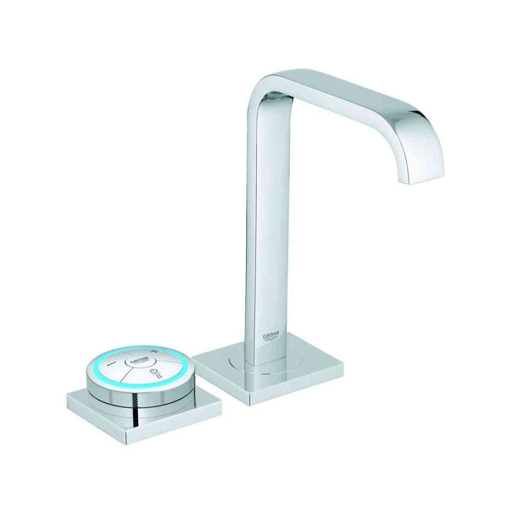 Technologia bezprzewodowa. Obsługa za pomocą przycisku. Doświadcz wygody technologii cyfrowej z GROHE F-digital. Przyciski na kontrolerze cyfrowym umożliwiają uruchamianie lub zatrzymywanie wody i regulację temperatury, podczas gdy pokrętło na zewnątrz służy do kontrolowania ciśnienia wody. Wzbogacony podświetlanym pierścieniem projekt zapewnia natychmiastową wizualną informację o temperaturze wody. A w przypadku wanny i prysznica cyfrowy przełącznik umożliwia przełączanie między wylotami wody za jednym dotknięciem.