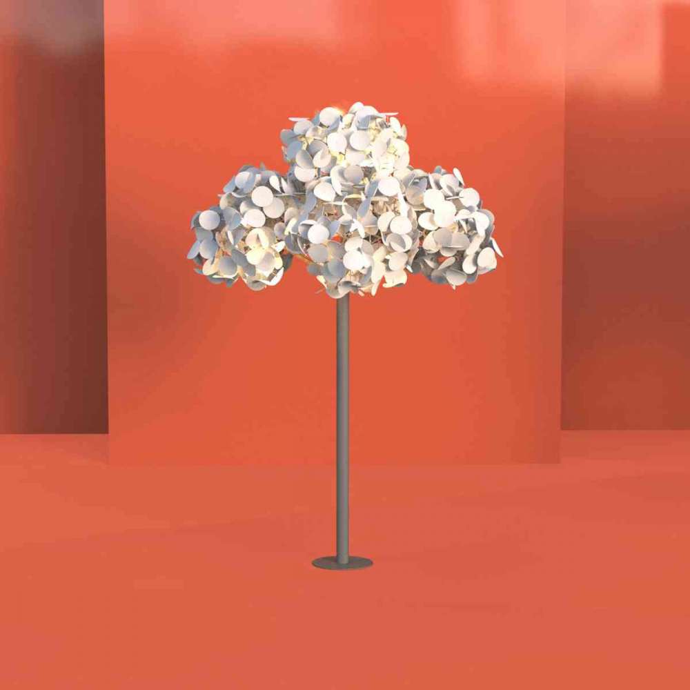 Lampa liściasta Link Tree została zaprojektowana w celu zapewnienia rozwiązania „podłącz i używaj” w biofilnym pakiecie, dla ruchliwych środowisk i tętniących życiem arterii komunikacyjnych. Malowany proszkowo stalowy pień rurowy tworzy miejsce na ukryte w środku okablowanie i kable. Opcjonalny stół 360° Seamless i zintegrowane punkty zasilania tworzą zachęcającą przestrzeń technologiczną, w której ludzie mogą się łączyć i ładować urządzenia. Podobnie jak inne wersje lamp Leaf, wełniane elementy klosza rozpraszają światło, jednocześnie pomagając zrównoważyć akustykę otoczenia. Drzewo łączące lampę liściową może ukrywać sprzęt, taki jak okablowanie, nadajniki, skrzynki przyłączeniowe i obwody, umożliwiając dyskretną integrację czujników, głośników i kamer z otoczeniem.