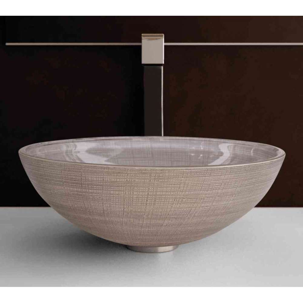 Okrągła umywalka nablatowa VENICE z artystycznego kryształowego szkła i ekskluzywną, ręcznie wykonaną dekoracją tekstury.