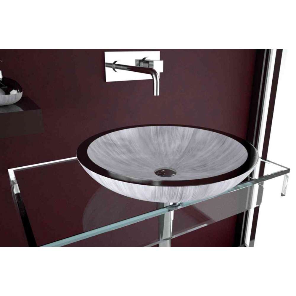 Okrągła umywalka nablatowa ROUND wyprodukowana w Alumix®, z połączenia stopów aluminium. Ekskluzywne dekoracje są malowane pędzlem, przy użyciu specjalnej techniki pędzla w celu uzyskania efektu bi-chromatycznego. Krawędź jest szczotkowana i polerowana ręcznie, aby podkreślić duszę i kolor, które są typowe dla tego materiału.