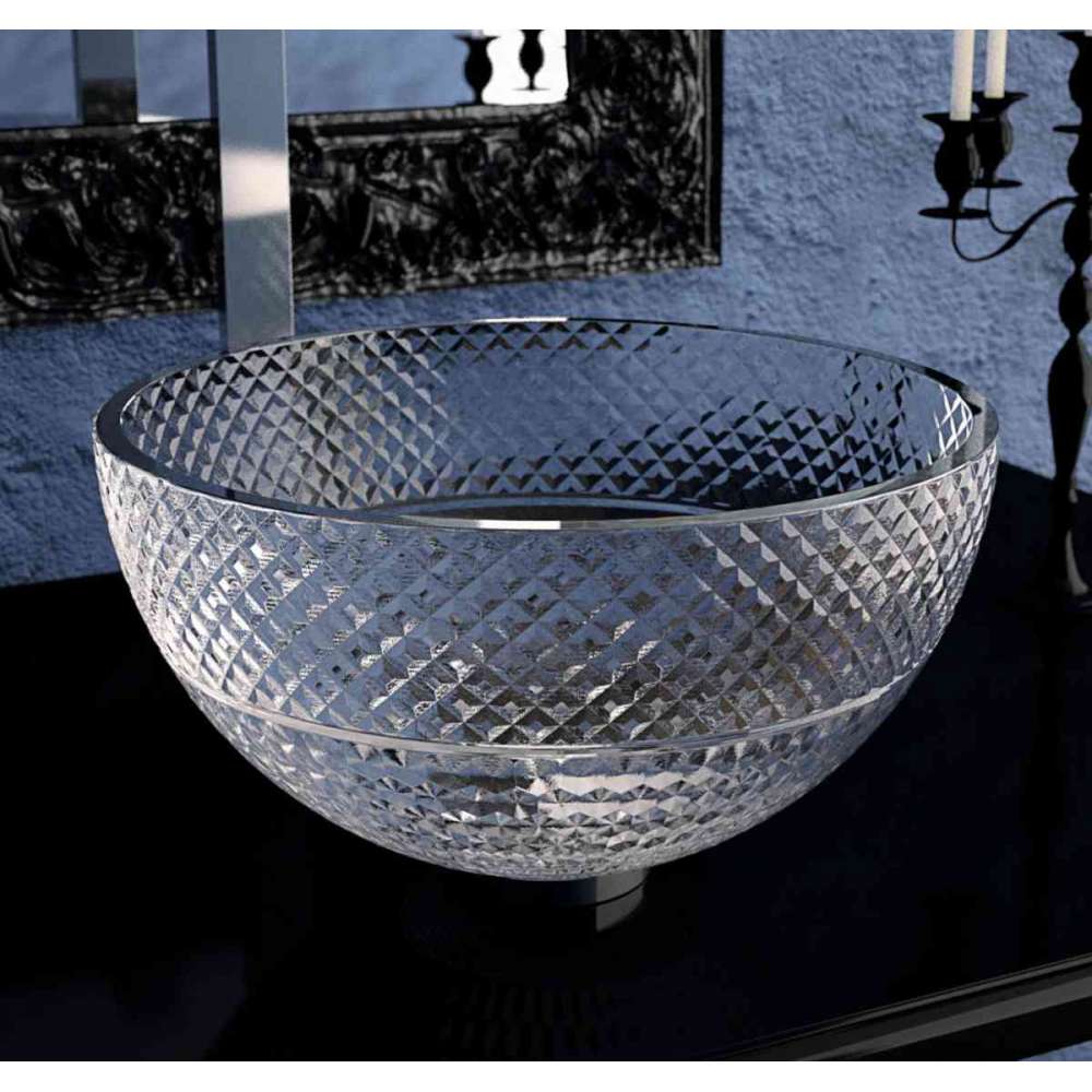 Okrągła umywalka nablatowa RAMADA z najczystszego bezbarwnego kryształu 24% pb.