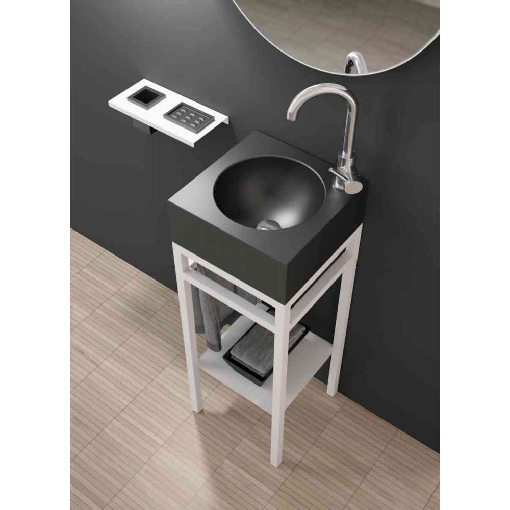 Metalowa umywalka z malowanej stali nierdzewnej AISI 304, ze zintegrowanymi uchwytami na ręczniki i półką. Umywalka z Vetrofreddo®.