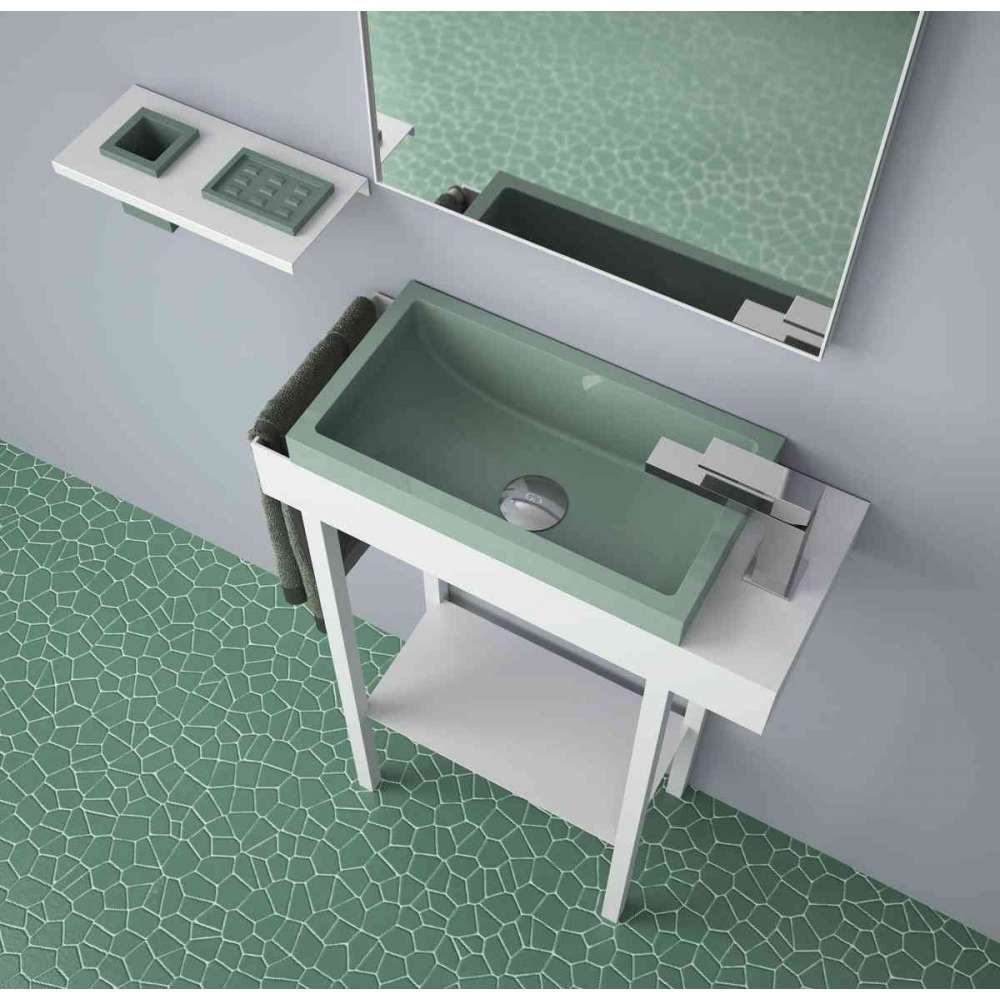 Metalowa umywalka z malowanej stali nierdzewnej AISI 304, ze zintegrowanymi uchwytami na ręczniki i półką. Umywalka z Vetrofreddo®