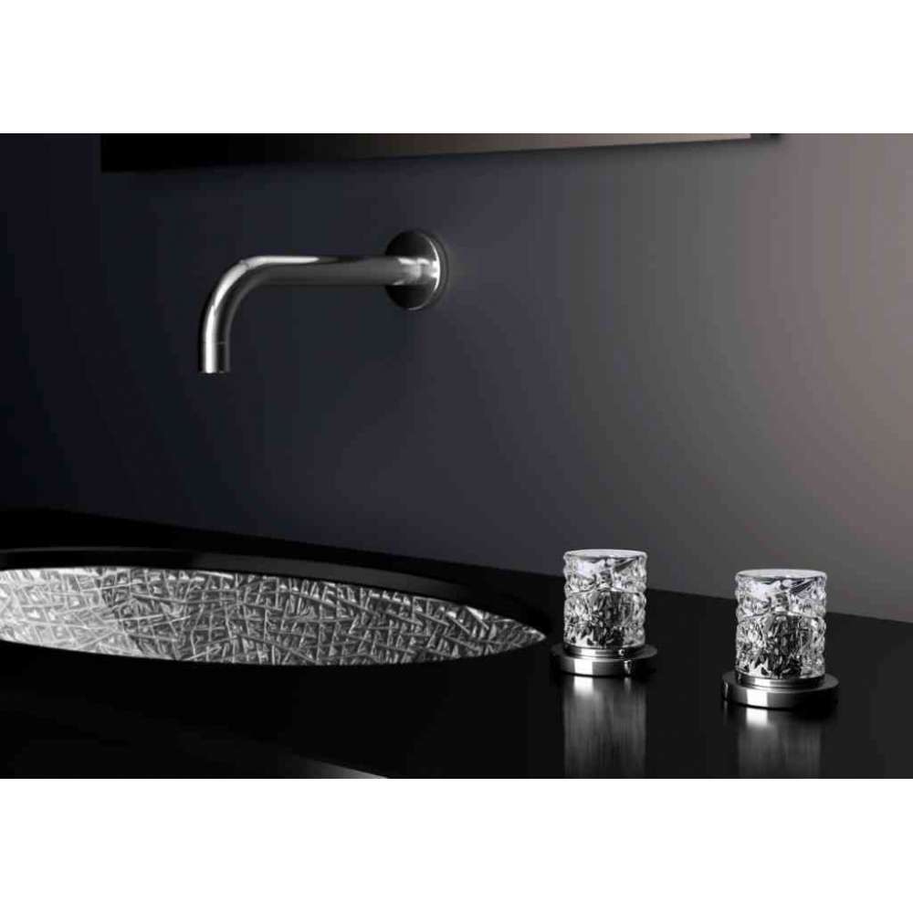 Lyric: ekskluzywna kolekcja uchwytów kranowych z czystego kryształu 24% cz.pb, osadzonych na mosiężnej podstawie dostosowanej do bezbłędnego dopasowania do serii Dornbracht – na zaworach Deque lub Symetrics. (Techniczne połączenie klamek zatwierdzone przez firmę Dornbracht).