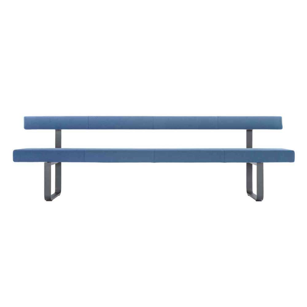 Girsberger unowocześnia klasykę wśród ławek: Permesso jest teraz dostępne z płaską stalową podstawą. Nowy design sprawia, że idealnie pasuje do nowego stołu Yoho firmy Girsberger.