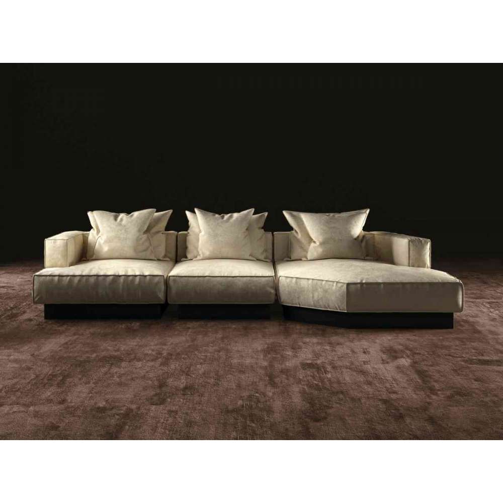 MOONAGE DAYDREAM to sofa modułowa. Konfiguracji można dokonać wybierając spośród czterech elementów: modułu centralnego, modułu końcowego, modułu końcowego szerokiego oraz szezlonga. Każdy element składa się z drewnianej skorupy wyściełanej pianką poliuretanową o różnej gęstości, wykończonej wierzchnią warstwą włókna akrylowego. W skład każdego modułu wchodzi poduszka oparcia oraz druga poduszka 60x60 cm. Moonage Daydream jest dostępny w całości pokrytej tkaniną lub skórą. Podstawa wykonana z matowego czarnego lakierowanego drewna lub pokryta metalową obudową w wykończeniach z polerowanego mosiądzu i polerowanej stali.