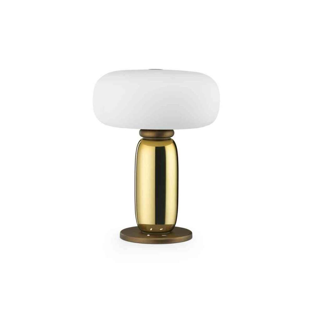 Polerowany mosiądz + lampa stołowa z ciemnego szkła
