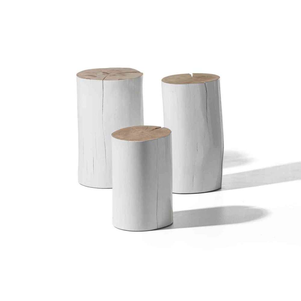 Fragmenty pnia bukowego, okorowane i lakierowane na zewnątrz, dają życie kolekcji niekonwencjonalnych stolików kawowych i otoman, które nadają naturalny urok każdemu wnętrzu. Dostępne w trzech rozmiarach, charakteryzują się spękaniami typowymi dla żywego drewna, które podkreślają szacunek firmy Gervasoni do naturalności materiałów i ich walorów.