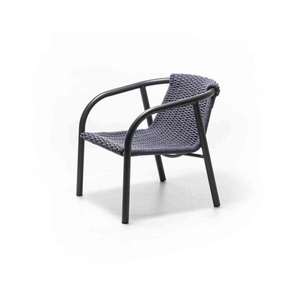 Minimalistyczny i swobodny styl otulony elegancją jest tym, co wyróżnia kolekcję Ken. Krzesło, fotel i leżanka mają pomalowaną białą lub szarą ramę z aluminium, metalu wyjątkowego pod względem swoich właściwości technicznych, w połączeniu z ręcznie plecionym szaro-niebieskim sznurem technicznym, oferując kolekcję zaskakującą gęstość i nieoczekiwany urok . Splot jest ręcznie tkany z liny poliestrowej powlekanej włóknem akrylowym, niezwykle elastycznego materiału i jednego z najbardziej odpornych na wodę i bezpośrednie działanie promieni słonecznych.