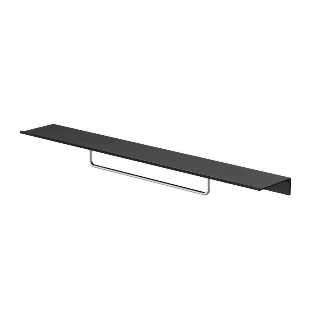 Zobacz większe Geesa Leev | Bathroom shelf 80 cm Black with towel rail 40 cm Brushed stainless steel