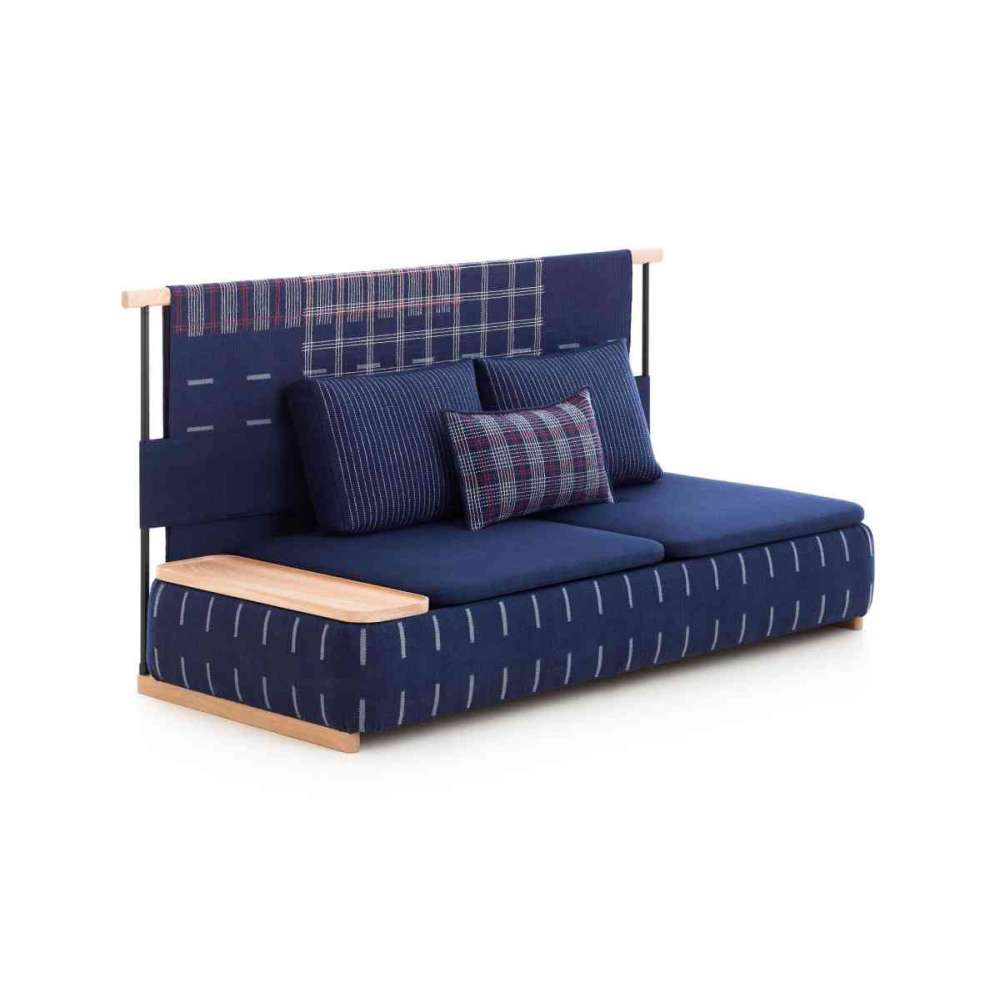 Skład włókien: 100% nowa wełna, drewno dębowe w wykończeniu matowym i lakierowana stal. zalecane są dwie poduszki 63x45 cm i jedna poduszka 60x35 cm.