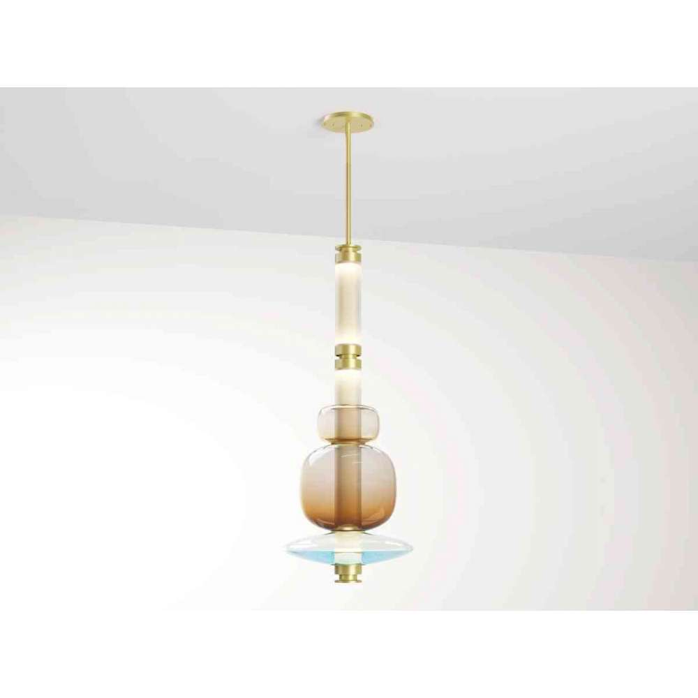 Zainspirowana księżycowym halo, seria LUNA oferuje wysoce konfigurowalne modułowe oprawy oświetleniowe, które rozrastają się we wszystkich kierunkach, gdy system montażu jest poziomy lub pionowy, układając kolor na kolor różnych kształtów dmuchanego szkła i została zaprojektowana tak, aby oferować nieskończone interpretacje ton, kształt i załamanie światła.