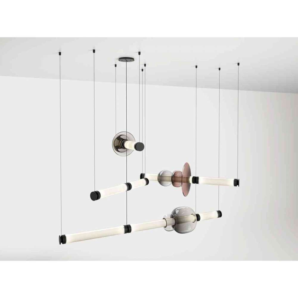 Zainspirowana księżycowym halo, seria LUNA oferuje wysoce konfigurowalne modułowe oprawy oświetleniowe, które rozrastają się we wszystkich kierunkach, gdy system montażu jest poziomy lub pionowy, układając kolor na kolor różnych kształtów dmuchanego szkła i została zaprojektowana tak, aby oferować nieskończone interpretacje ton, kształt i załamanie światła.