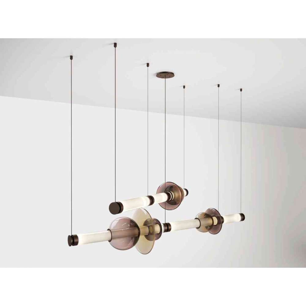 Zainspirowana księżycowym halo, seria LUNA oferuje wysoce konfigurowalne modułowe oprawy oświetleniowe, które rozrastają się we wszystkich kierunkach, gdy system montażu jest poziomy lub pionowy, układając kolor na kolor różnych kształtów dmuchanego szkła i została zaprojektowana tak, aby oferować nieskończone interpretacje ton, kształt i załamanie światła.