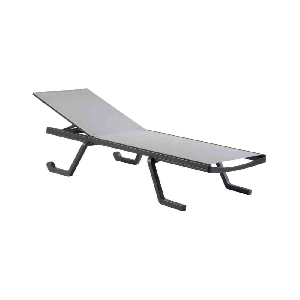 Leżak do ustawiania jeden na drugim, z hartowaną, współwtryskiwaną ramą z technopolimeru, stali i aluminium. Wentylowana siatka o wysokiej wytrzymałości, kółka ułatwiające manewrowanie i oparcie regulowane w pięciu pozycjach.