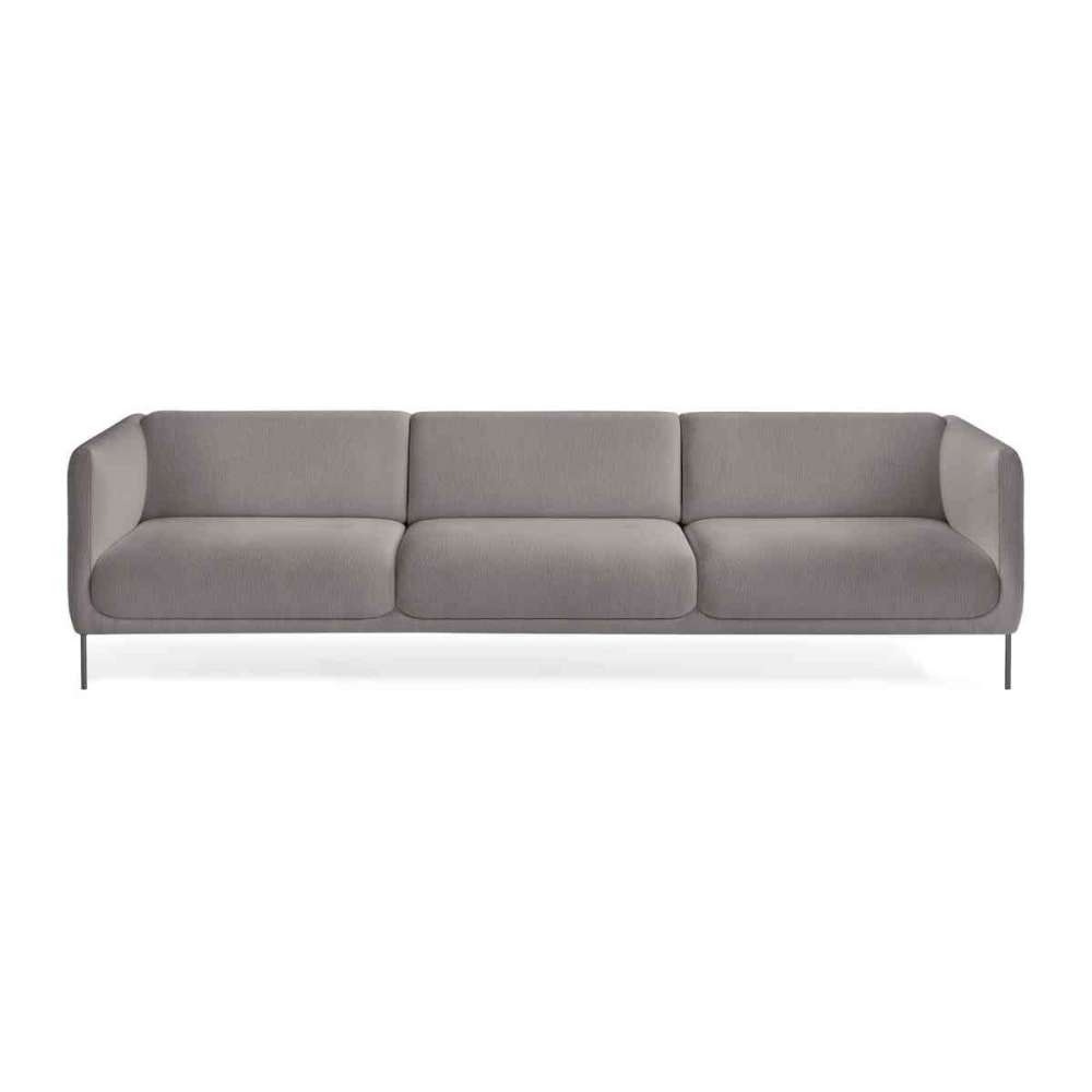 Opis produktu: Dostępny w różnych szerokościach, wyselekcjonowany wybór tkanin zdobi drewnianą ramę dzięki stalowej podstawie i smukłym nogom ze szczotkowanej stali nierdzewnej lub czarnej stali malowanej proszkowo. Brak luźnych poduszek zapewnia czysty i uporządkowany wygląd, a utwardzana na zimno pianka zapewnia wygodne siedzenie, rozmowę lub leżenie przez wiele godzin.