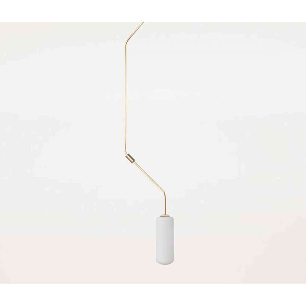 Lampy wiszące Ventus to efekt współpracy między firmą Frama i duńskimi projektantami Included Middle, w której tradycyjny przewód wiszący otrzymuje architektoniczne zagięcie, tworząc nowe formy otoczenia, w którym jest umieszczony. Wisiorek jest zwieńczony kloszem z opalowego szkła, który emanuje ciepłym blaskiem wbudowanej żarówki LED. Brązowy przewód silikonowy. Uwaga: żarówka i wieszak sufitowy w zestawie.