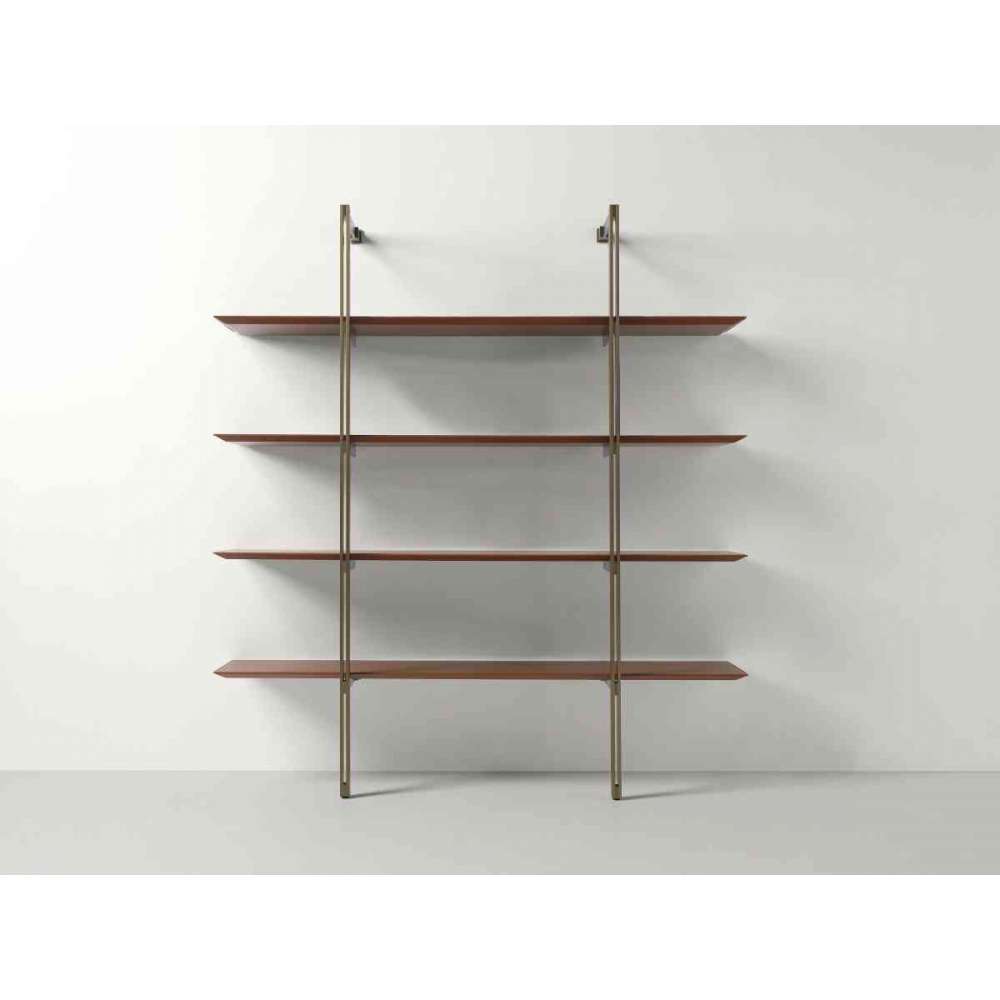 Regał z anodyzowanego aluminium z półkami pokrytymi ekoskórą. (szer., gł., wys. : 2100, 500, 60)