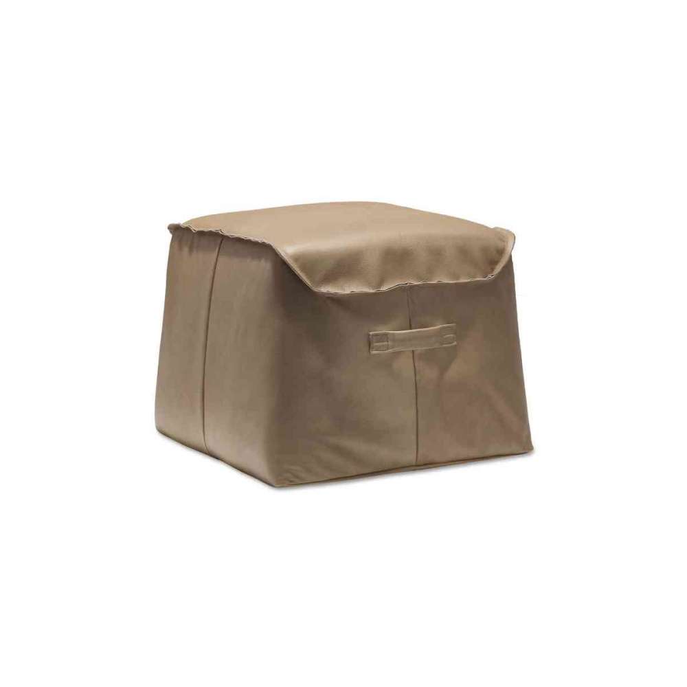 Pufa wyściełana trudnopalną pianką poliuretanową i tapicerowana skórą z surowo ciętymi krawędziami