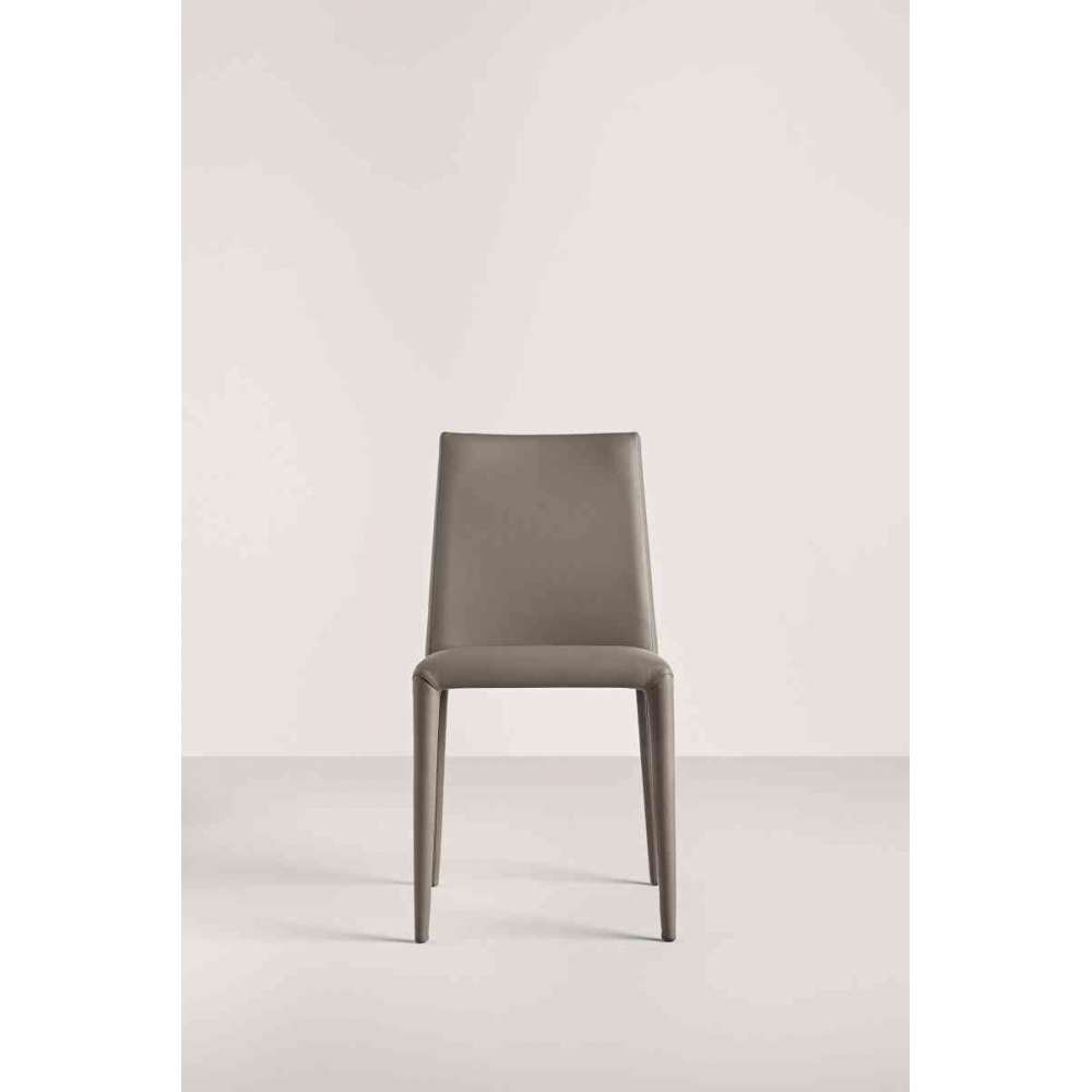 Wyściełane krzesło, w całości tapicerowane skórą lub tkaniną. Stalowa rama, elastyczny tył ze stalowym rdzeniem.