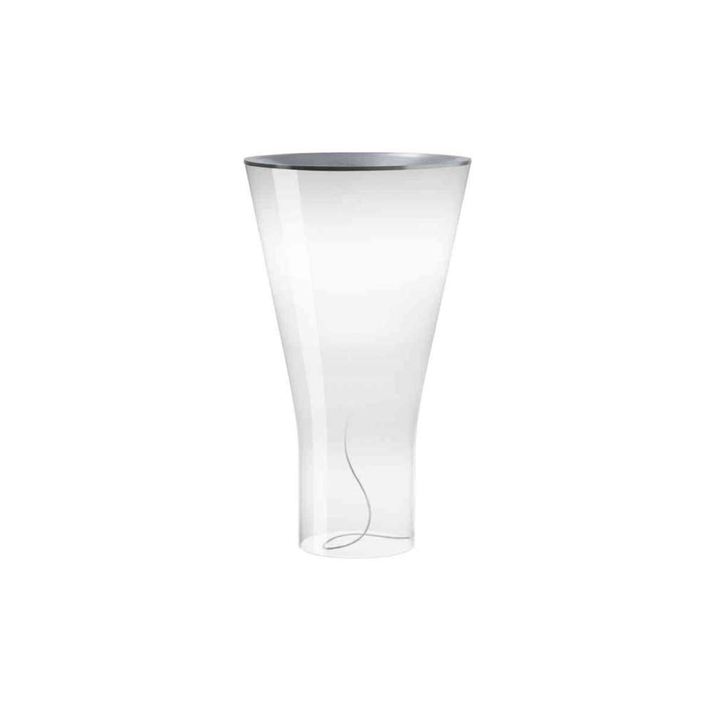 Lampa stołowa z rozproszonym światłem. Dyfuzor wykonany z ręcznie dmuchanego szkła w stopniowanych odcieniach bieli do transparentności. Dyfuzor ma trzy różne obszary kolorystyczne: górna część jest całkowicie biała, środkowa część stopniowo przechodzi od odcieni bieli do przezroczystości, a dolna część jest całkowicie przezroczysta. Aluminiowy dysk powlekany płynem w kolorze anodyzowanego aluminium na górze działa jak ściemniacz dotykowy na całej swojej powierzchni, który może zmieniać się do trzech poziomów światła - włączania i wyłączania. Część techniki oświetleniowej, składająca się z paska diod LED owiniętego wokół cienkiej aluminiowej rurki i osłoniętego cylindrycznym dyfuzorem z opalizującego poliwęglanu, znajduje się pod dyskiem i jest całkowicie ukryta za górną częścią szklaną w kolorze białym. Gdy lampa jest włączona, mały otwór w pokrywie z przezroczystą silikonową nasadką tworzy punkt świetlny. Przezroczysty kabel elektryczny i transformator na wtyczce.