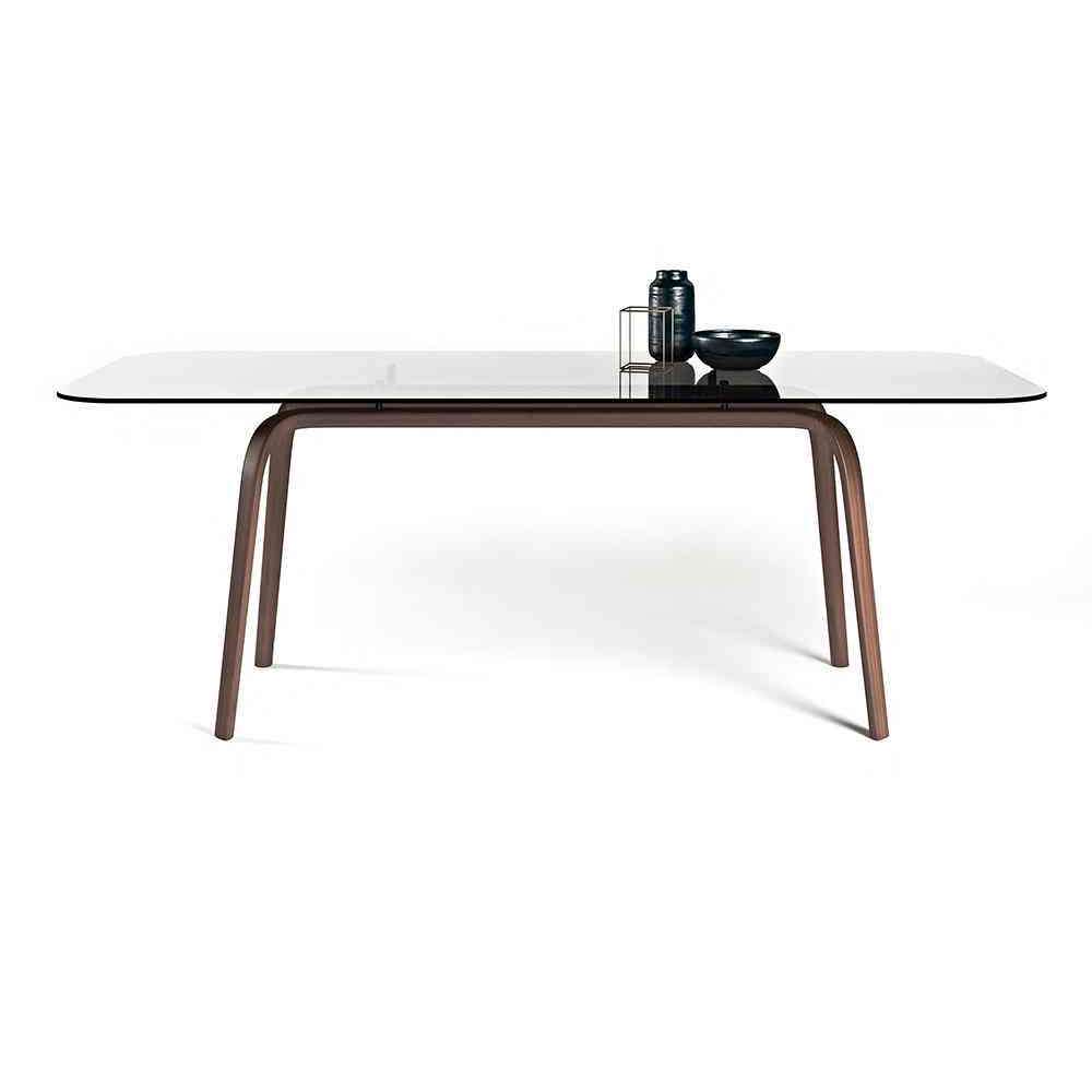 Szklany blat, podstawa z twardego drewna Noce Canaletto.
