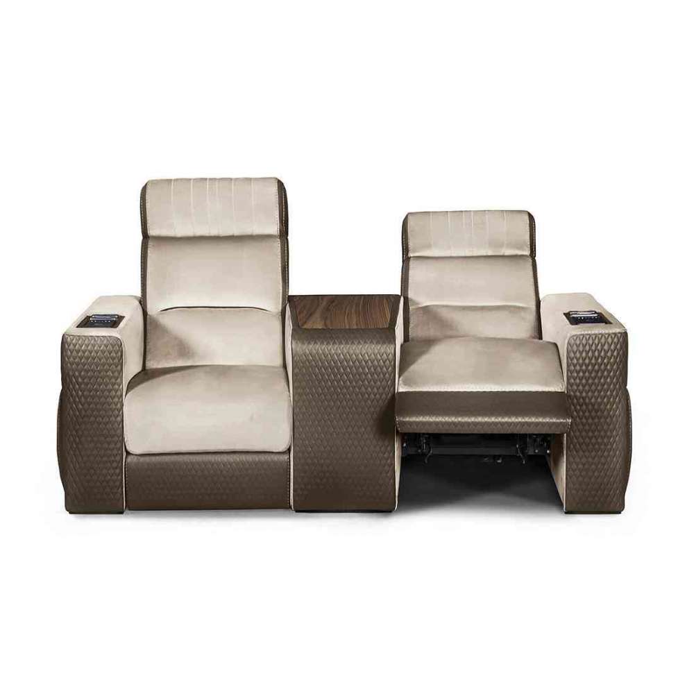 Kino domowe DUSTIN można w pełni dostosować za pomocą szerokiej gamy prestiżowych materiałów, takich jak skóry, marmury i wyjątkowe aksamity