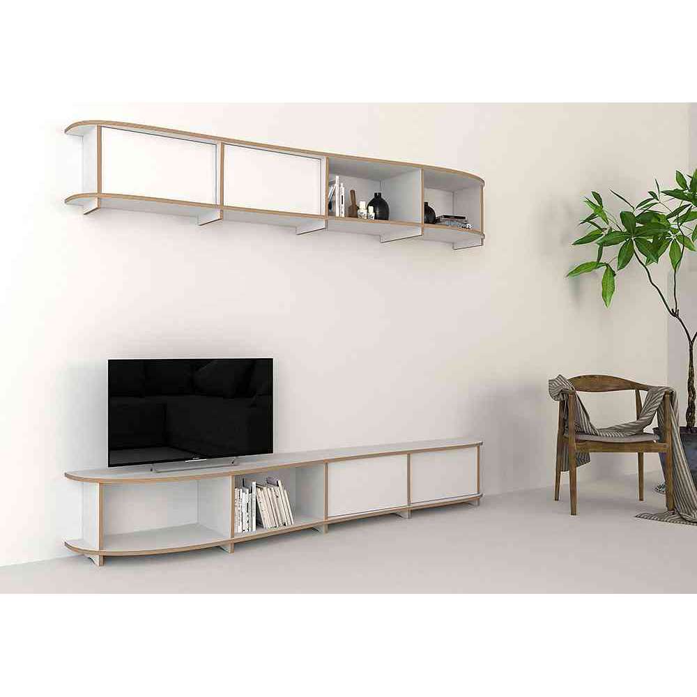 Nasza purystyczna meblościanka Kila zapewnia nowoczesną i promienną atmosferę dzięki swoim miękkim formom. Szczególnym elementem przyciągającym wzrok są drzwi Tip-On, które są ułożone naprzemiennie. Drzwi można otworzyć bez uchwytów i tylko lekkim pchnięciem. Harmonijny i zakrzywiony język wzorniczy nadaje designerskim meblom wykończenie. Poszczególne części mają po 240 cm szerokości i ok. 36 cm wysokości. Kila oferuje 4 otwarte i 4 zamknięte przegrody i jest wykonana z naszego wysokiej jakości materiału brzozowego FU z pokrywającą powłoką z żywicy melaminowej, co czyni ją szczególnie wytrzymałą i łatwą do czyszczenia. Dzięki otwartej konstrukcji ściany dziennej można zainstalować nawet 77-calowe telewizory. Dzięki naszej minimalistycznej meblościance Kila możesz umieścić swój telewizor w centrum uwagi. Aby zindywidualizować mebel, możesz zmienić wymiary, materiał, a także kształt w zaledwie kilku krokach w naszym intuicyjnym konfiguratorze. Tutaj również można zaplanować klapy, drzwi lub szuflady. Jeśli masz jakiekolwiek pytania lub problemy podczas planowania nowych designerskich mebli, nasz doświadczony zespół projektantów chętnie Ci pomoże.