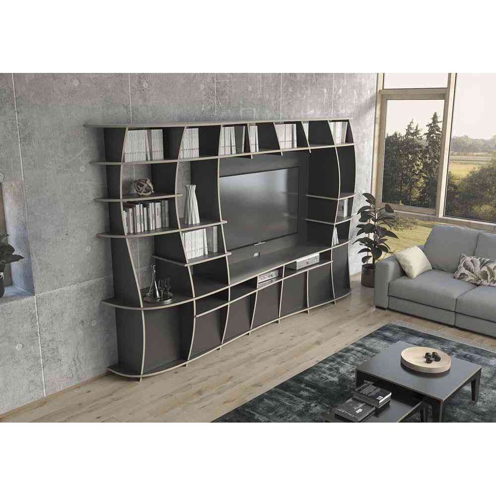 Meblościanka Giuseppa wnosi powiew świeżości do Twojego kina domowego. Ściana telewizyjna Giuseppa jest w sam raz dla tych, którzy chcą zapewnić odpowiednie miejsce dla swojego cennego systemu rozrywki. Wymiary całkowite to (szer. x wys. x gł.) 365 cm x 220 cm x 55 cm. Ponadto łącznie 28 przegródek o różnych rozmiarach, w tym wnęka na telewizor, oferuje miejsce do przechowywania płyt DVD, amplitunera, konsoli, systemu dźwiękowego, głośników i oczywiście telewizora. Wnęka pod telewizor ma wymiary (szer. x wys.) 176 cm x 114 cm, co wystarcza nawet na 75-calowy telewizor. Wszystkie ważne szczegóły, takie jak wymiary, przegródki, kolor i kształt, można dostosować do swoich pomysłów i potrzeb w Konfiguratorze 3D w sekcji Kształtuj siebie.