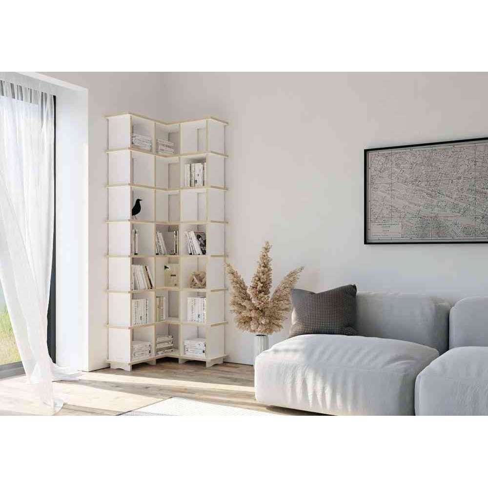 Półka narożna Flaca wykonana ze szlachetnej fińskiej sklejki brzozowej emanuje naturalną elegancją i harmonijnie wtapia się w każde pomieszczenie. Jednocześnie przy wysokości dwóch metrów oferuje wystarczająco dużo miejsca na książki i wyjątkowe pamiątki z życia, którymi chcesz się otaczać na co dzień. Dzięki konfiguratorowi 3D z form.bar możesz zmienić półkę według własnego uznania i idealnie dopasować ją do swoich potrzeb.