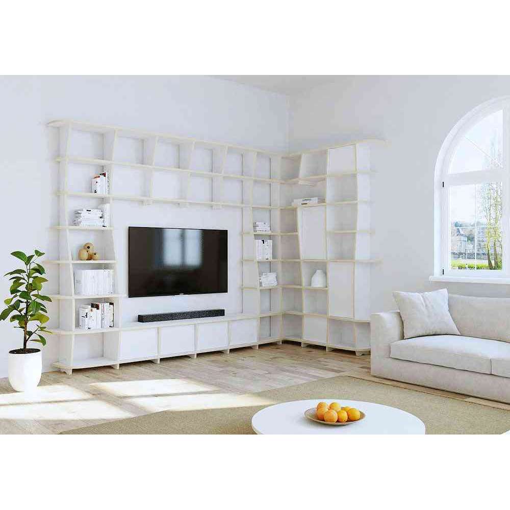 przypadku półki narożnej Famosa nazwa mówi sama za siebie: Famos udaje się stworzyć przewiewny wygląd dzięki otwartemu, zabawnemu projektowi, który charakteryzuje się również dużą przejrzystością. Telewizory i inne urządzenia można łatwo zintegrować, dzięki czemu zawsze powstaje harmonijny obraz, który przyciąga uwagę. Jednak za łącznie ośmioma drzwiami Famosa oferuje również przyjemną ilość miejsca na wszystko, co lepiej ukryć.