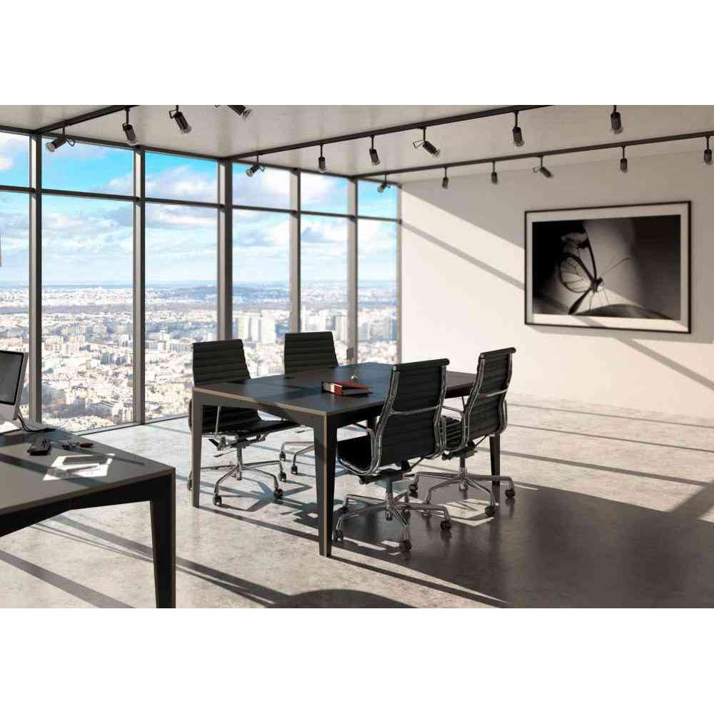 Czarny i liniowy stół konferencyjny Kubo doda szyku i klasy każdemu pomieszczeniu. Nasz stół konferencyjny ma 170 cm długości i 120 cm szerokości. Wymiary można zmienić w naszym konfiguratorze 3D. Stół wykonany jest z fińskiej sklejki brzozowej pokrytej wysokiej jakości żywicą melaminową. Bez ograniczeń może na nim siedzieć lub pracować do 6 osób. Po czasie dostawy 4 - 6 tygodni dostarczamy stół do Twojego domu.