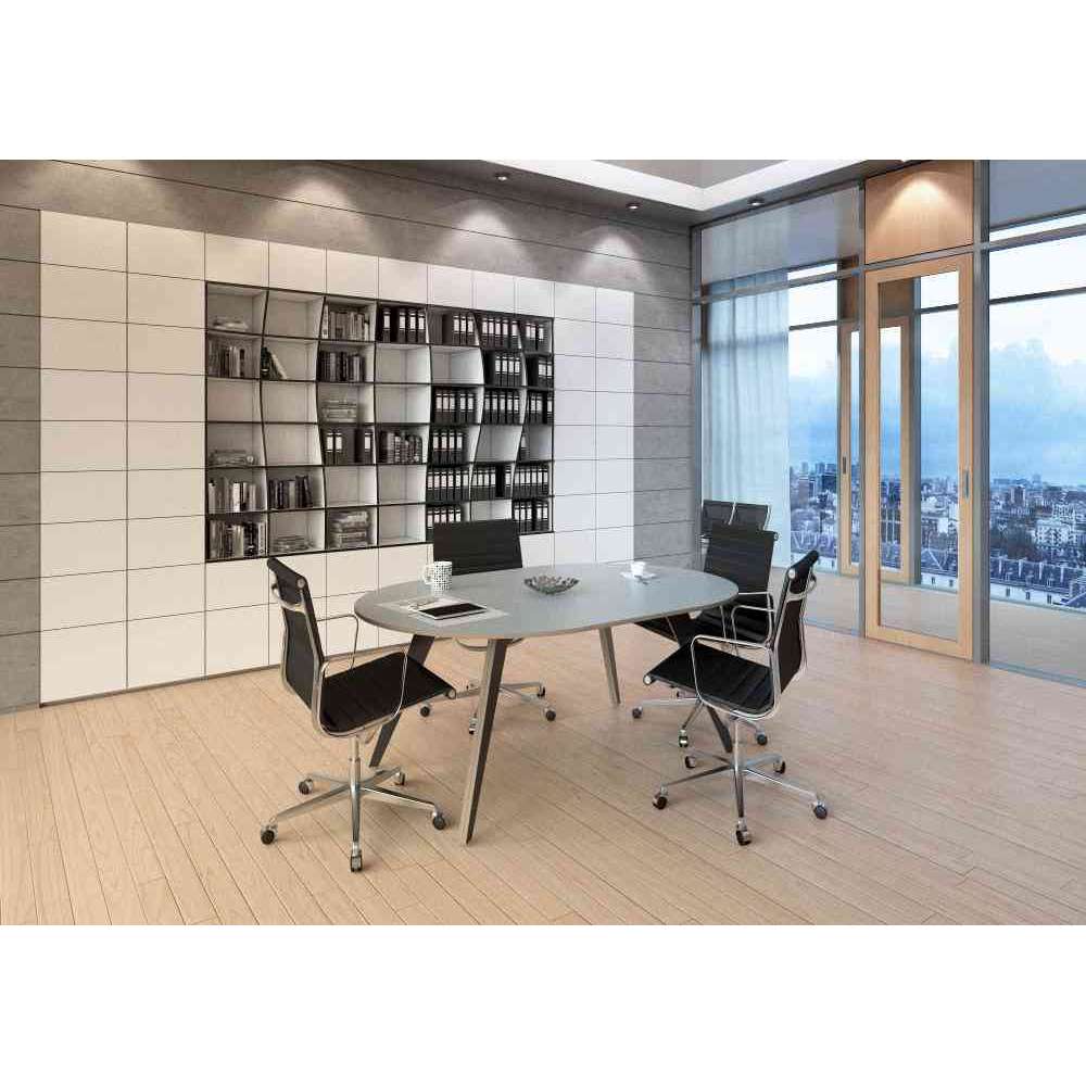 Nasz owalny stół konferencyjny Colloqo jest naprawdę wszechstronny. Stół konferencyjny zapewnia wystarczająco dużo miejsca dla co najmniej 4 osób i jest idealny do spotkań lub pracy w skupieniu. Kontrast szarego okrągłego blatu z czarnymi kanciastymi nogami nadaje stołowi klasyczny i ponadczasowy wygląd. Wymiary, kształt i materiał można zmienić w naszym konfiguratorze 3D w zaledwie kilku krokach. Czas realizacji Twojego Unicum na zamówienie to 4 - 6 tygodni.
