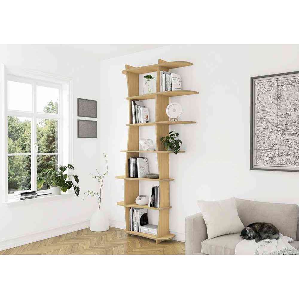 Elegancki regał Cocolina oferuje mnóstwo miejsca na ulubione książki i przedmioty, które są dla Ciebie ważne i czynią Cię tym, kim jesteś. Szlachetna okleina z prawdziwego drewna z aksamitnie miękką, naturalnie ukształtowaną powierzchnią z prawdziwego drewna nadaje Twojej przestrzeni życiowej ciepło i naturalność. Cechą szczególną Cocoliny jest jej zmienność. Można go ustawić nie tylko do góry nogami, ale także lustrzanym odbiciem. Oznacza to, że możesz stworzyć kilka mebli z jednego w tym samym czasie, w zależności od nastroju i zapewnić sobie różnorodność.