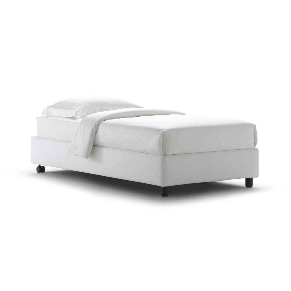 Niezwykle funkcjonalne łóżko o eleganckim liniowym designie. Dostępne z podstawą sprężynową, podstawą do przechowywania, podstawą stałą h 25 cm. lub wys. 16 cm. i z ruchami elektrycznymi. Całkowicie zdejmowane pokrycie z tkaniny, skóry, Ecopelle lub Nabuk.